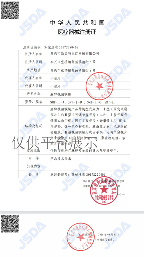 正品銷售 斯美特便攜式麻醉視頻喉鏡SMT-I-B,歡迎聯(lián)系訂購(gòu)。