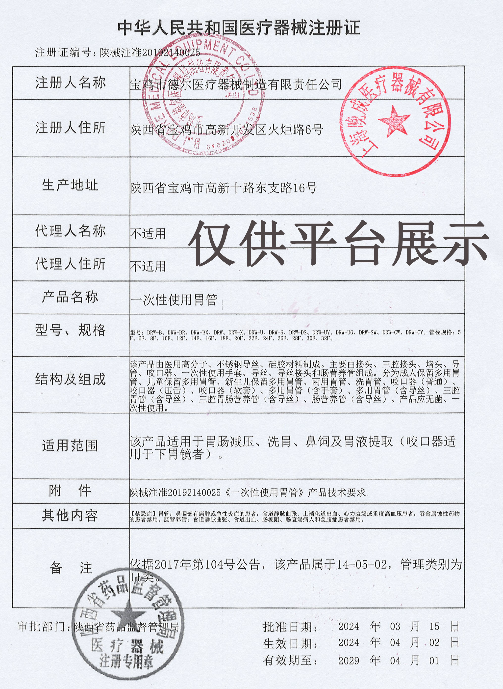 醫(yī)械網(wǎng)是一家提供陜西寶雞德爾DRW-X型一次性使用胃管價(jià)格、參數(shù)介紹等信息的展示平臺(tái),為您提供優(yōu)質(zhì)的陜西寶雞德爾DRW-X型一次性使用胃管產(chǎn)品,上海晚成醫(yī)療器械有限公司專注于各類醫(yī)療器械批發(fā)及零售,聯(lián)系電話:400-006-1850。